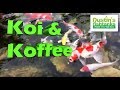 Koi pond and koffee, morning aquarium fish feeding, Live bearers and koi get some food13:234,394