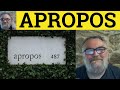 Apropos - Apropos Meaning - Apropos Examples - Apropos in a Sentence - French in English
