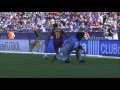 Disparo con rosca de Messi a la cruceta