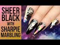 Sheer Black Acrylic Full Look with Marbled Sharpie Design - Inspired by Instagram Nail Artist26:4744,768