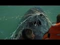 Pulling Up a White Shark in an Illegal Gill Net
