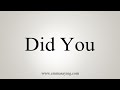 How To Pronounce Did You