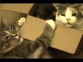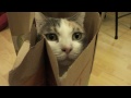 Cat struggles to open a box